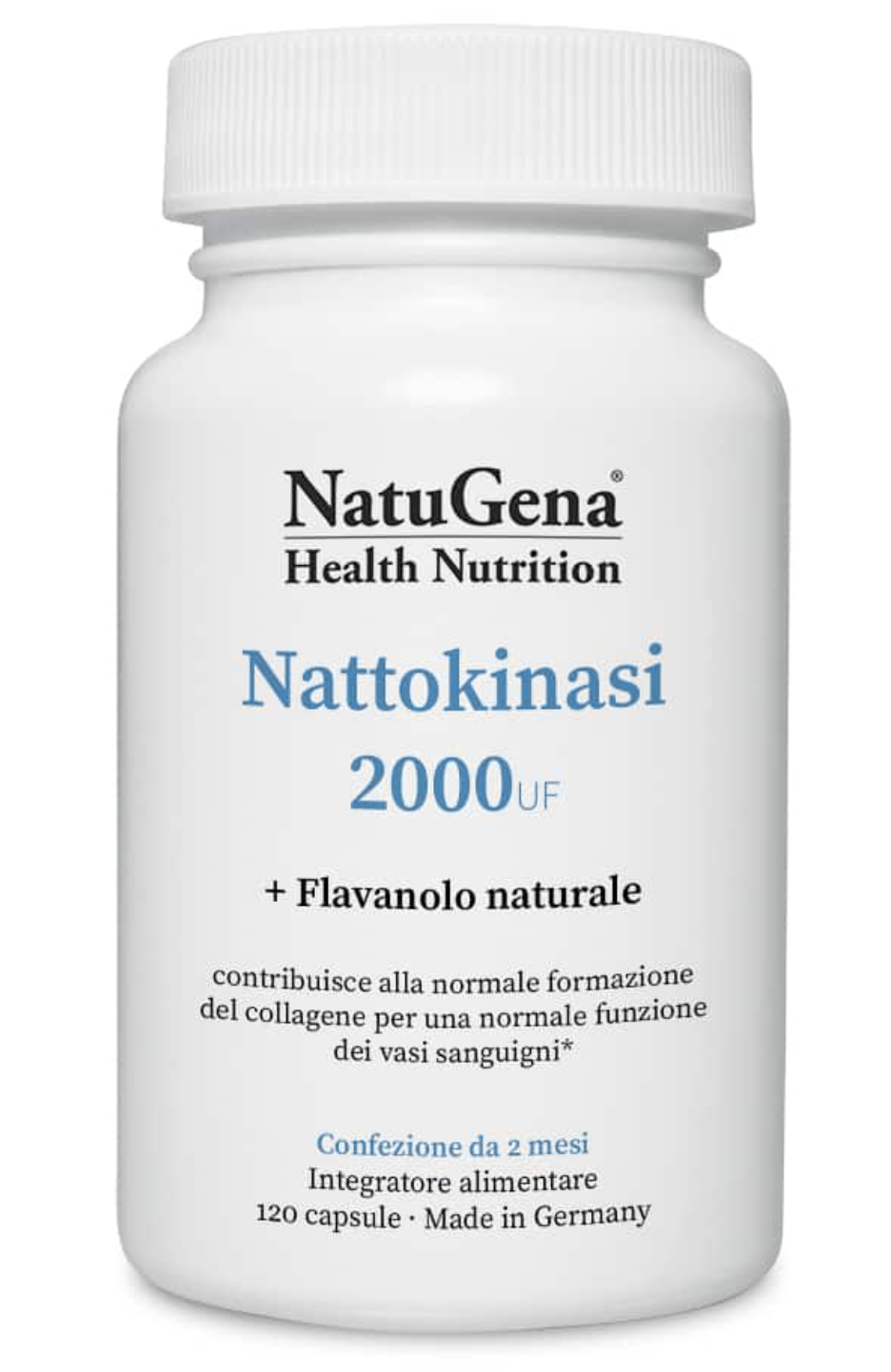 Il nome “natto” deriva da un piatto giapponese a base di soia. La nattokinasi è un enzima che si ottiene dalla fermentazione dei fagioli di soia. È costituito da più di 270 aminoacidi e appartiene al gruppo delle proteasi. Oltre all’enzima, Nattokinasi 2000 contiene anche un estratto di cacao con un contenuto di flavanolo del 50%. Grazie alla vitamina C del camu camu, Nattokinase 2000 contribuisce alla normale formazione del collagene per una normale funzione dei vasi sanguigni.
